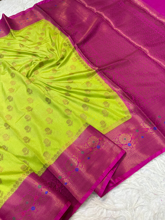 Pista green royal pink shade Dupion Silk premium Banarasi Saree