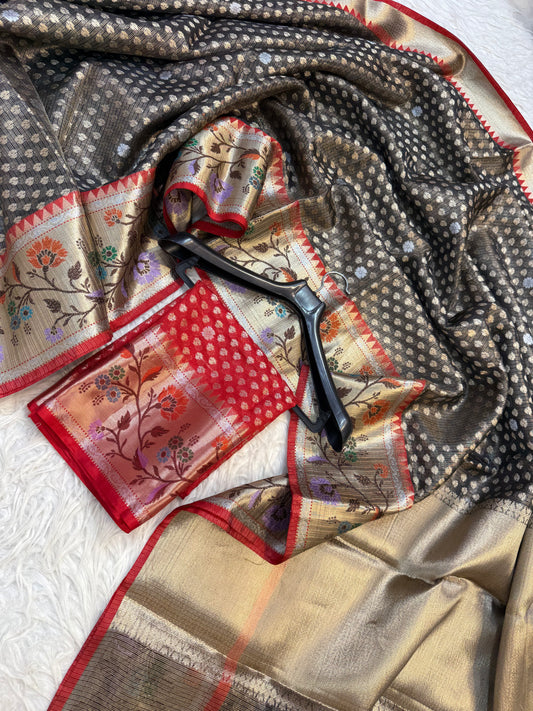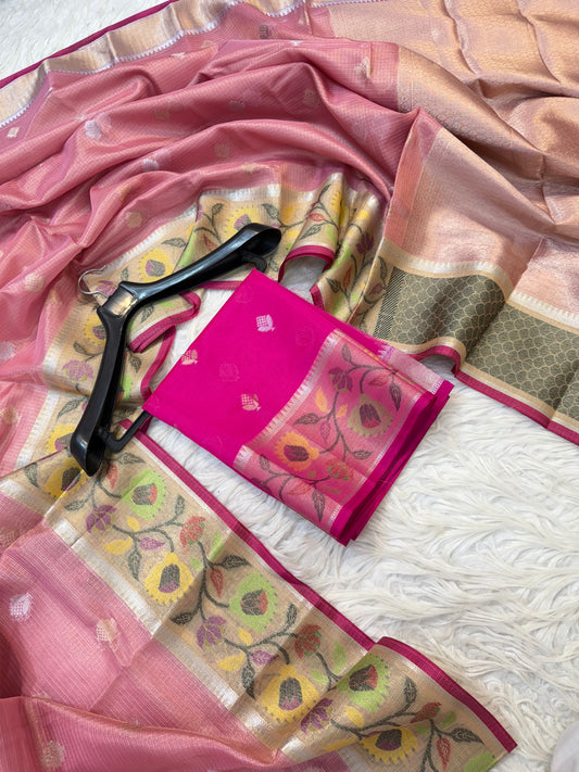 tissue kota allover zari woven floral design meenakari banarasi saree
