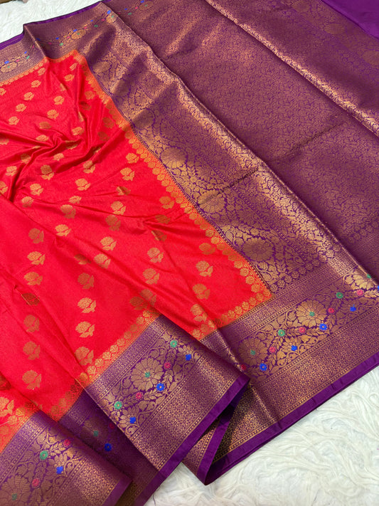 Red royal blue shade Dupion Silk premium Banarasi Saree