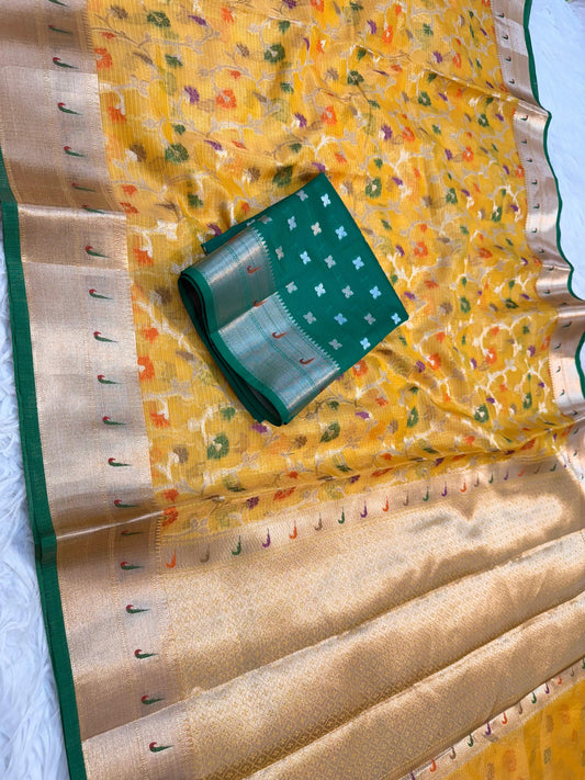 Nevy yellow shade Dupion Silk premium Banarasi Saree
