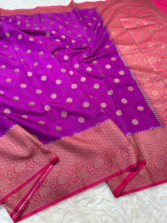 Purple royal pink shade Dupion Silk premium Banarasi Saree