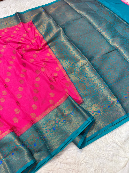 Royal pink sea green shade Dupion Silk premium Banarasi Saree