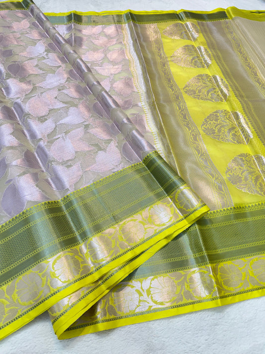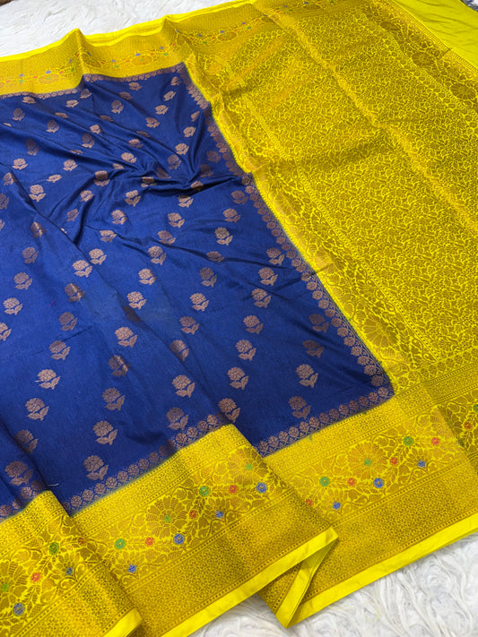 Nevy yellow shade Dupion Silk premium Banarasi Saree