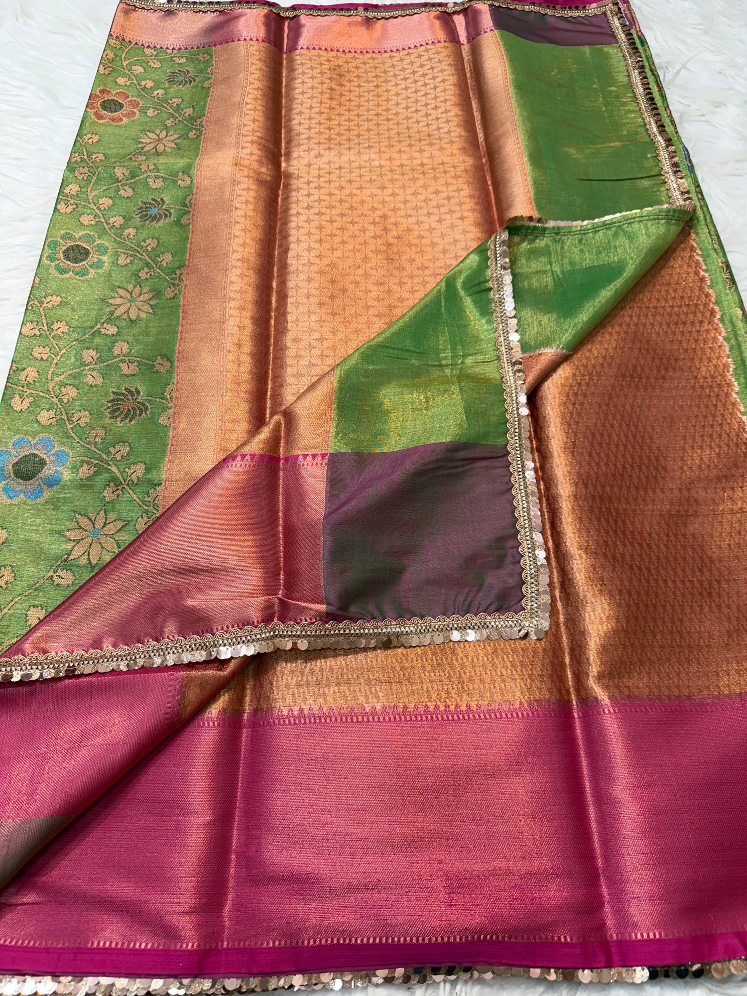 Pista green royal pink shade Dupion Silk premium Banarasi Saree