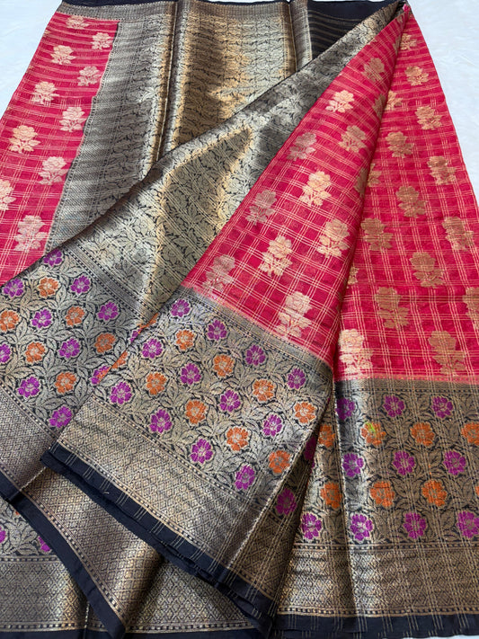 Black royal pink red shade kota mirror work premium Banarasi saree