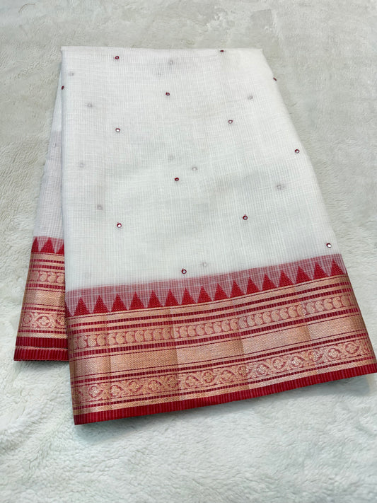 Yellow & multicolour kota digital print embroidery Banarasi saree