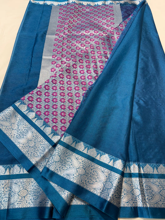 Wine & firozi shade Dupion Silk premium Banarasi Saree