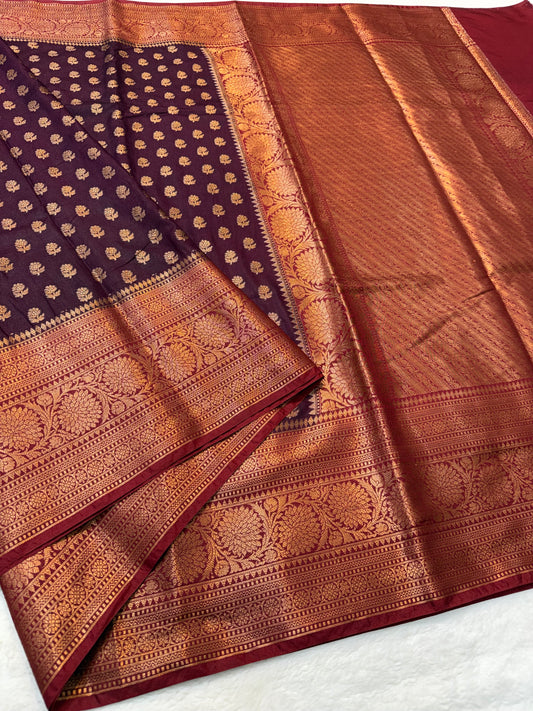 Wine & yellow shade Dupion Silk premium Banarasi Saree