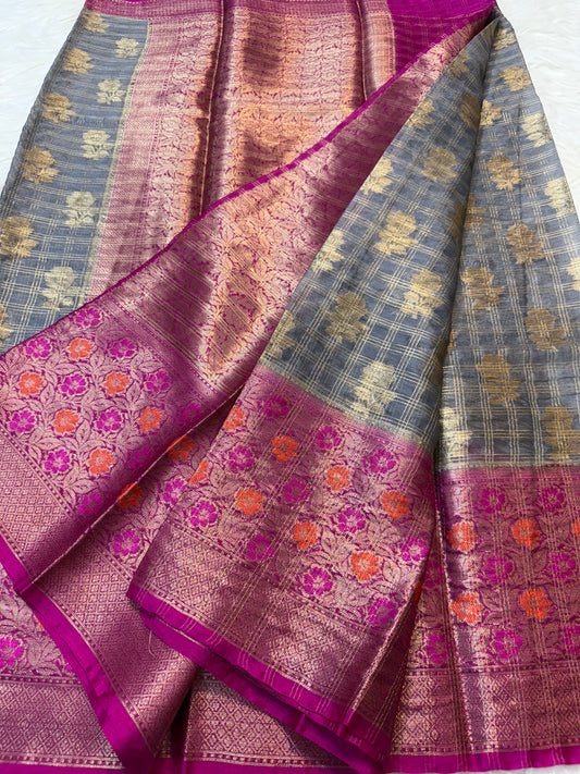 Grey magenta shade georgatte Banarasi saree