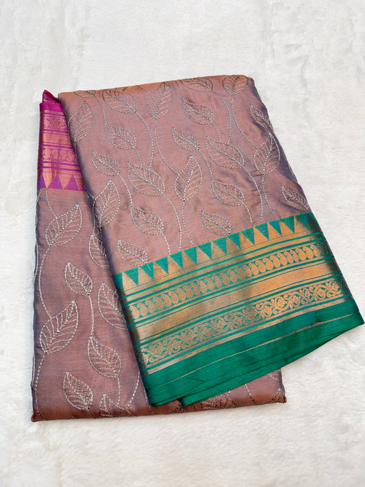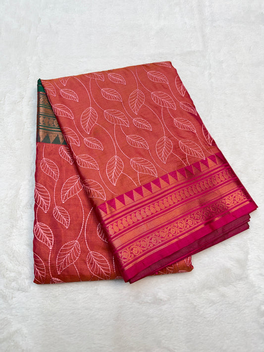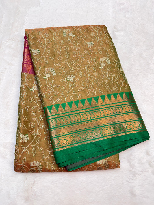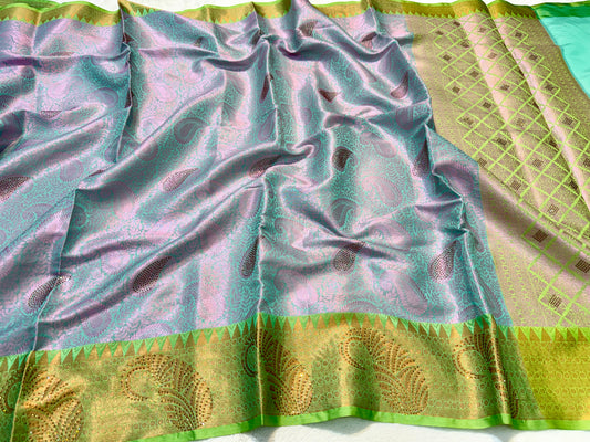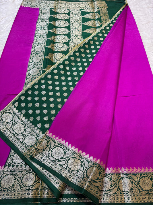 Royal pink bottle green shade Dupion silk premium Banarasi saree