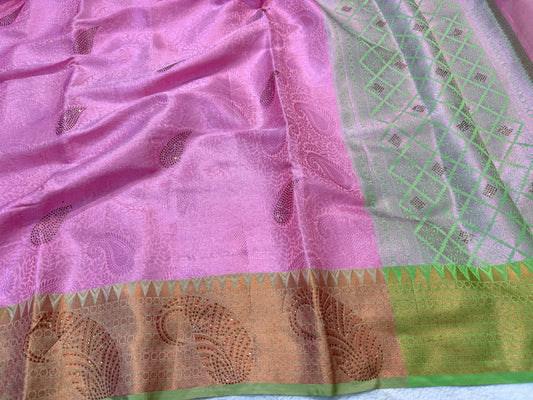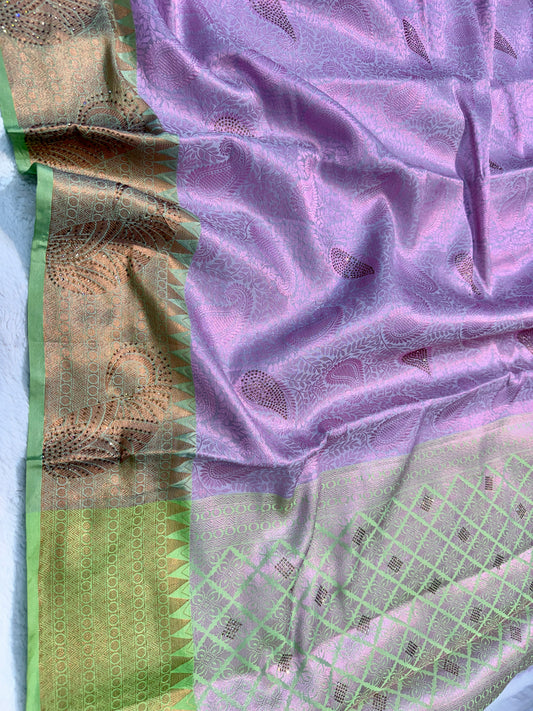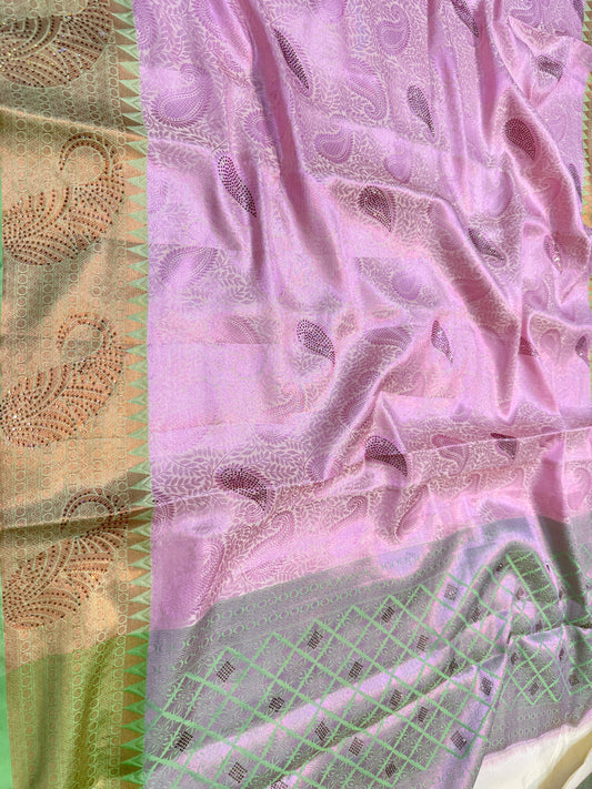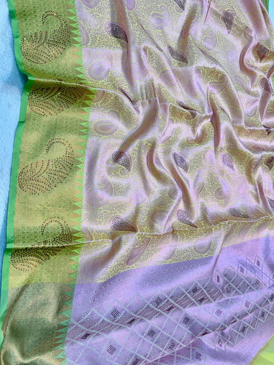 Multicolour shade zari brocade swarovski work Banarasi saree