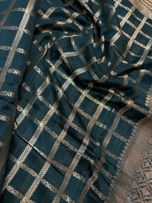 Bottle green shade Raw mango soft silk banarasi saree