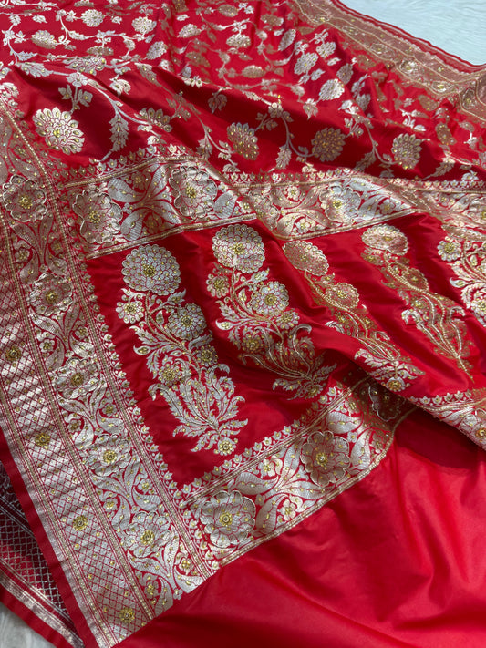 Red wedding Satin katan stone work premium Banarasi silk saree