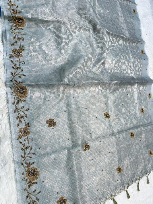Silver shade tissue kota zardosi work premium Banarasi saree