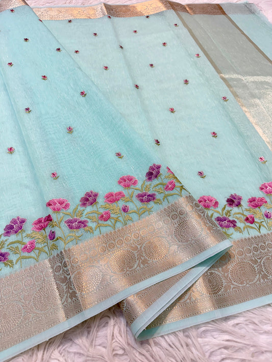 Banarasi Tissue linen embroidery saree
