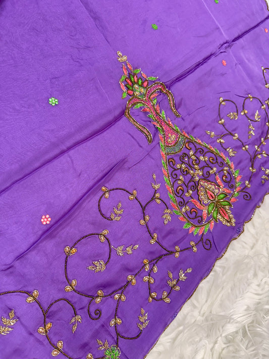 Purple shade Viscose organza silk ari & zardosi work partywear saree