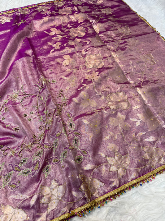Purple shade tissue ari & zardosi work designer premium Banarasi saree