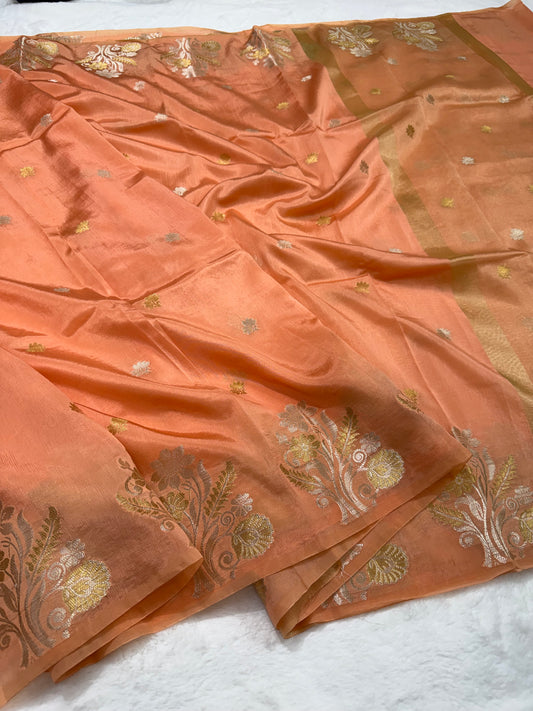Peach shade Raw mango soft silk banarasi saree