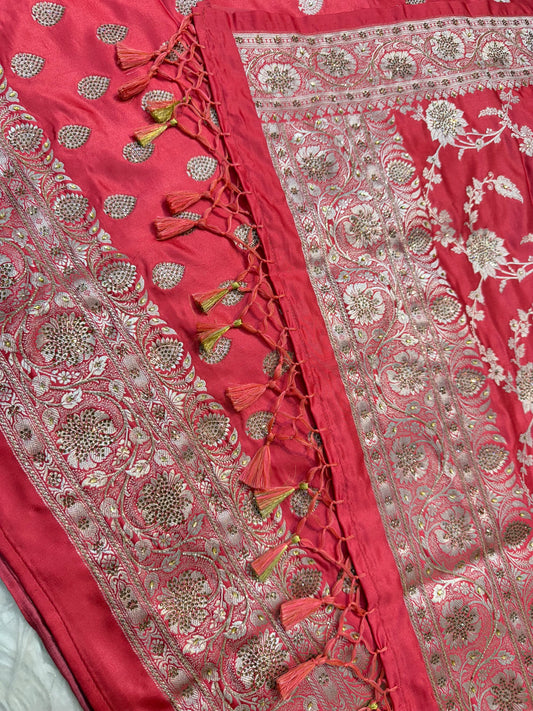 Strawberry Satin Katan Swarovski Work Banarasi suit