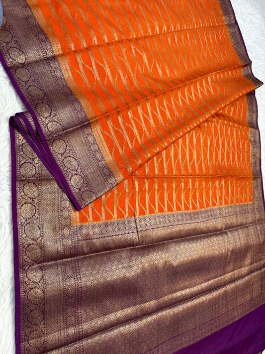 Orange magenta shade georgatte Banarasi saree
