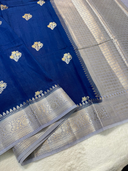 Bevy blue shade raw mango Banarasi premium Banarasi saree