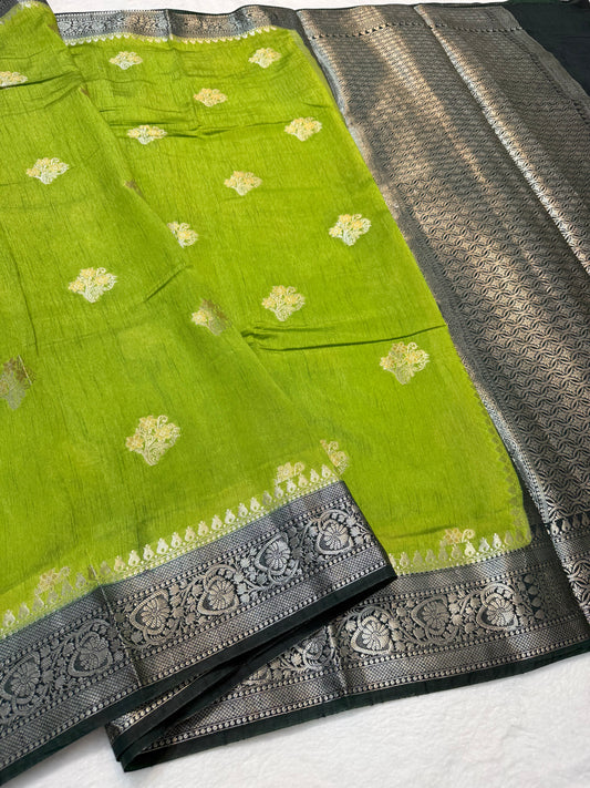 Mehendi & sea green shade raw mango premium Banarasi saree