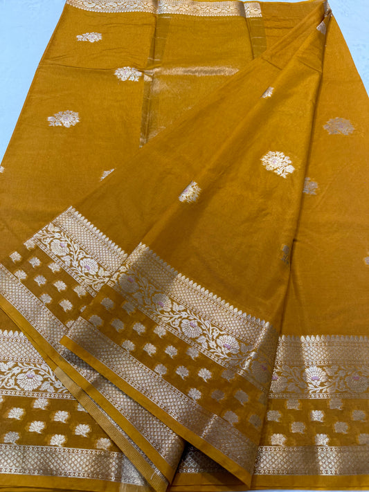 Yellow shade raw mango Banarasi premium Banarasi saree