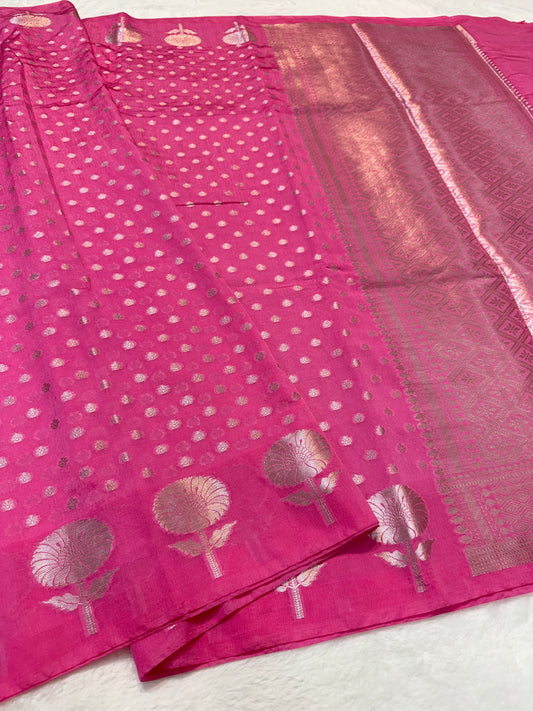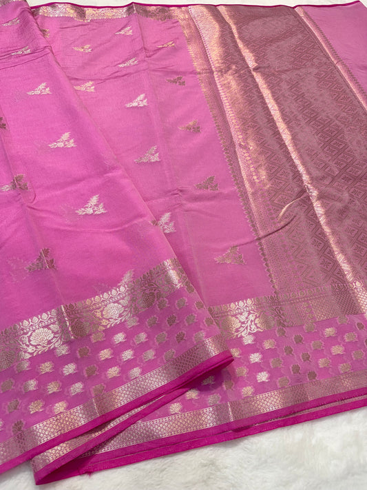Strowberry & magenta shade raw mango Banarasi premium Banarasi saree