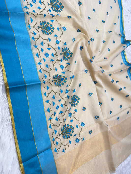Off White powder blue shade tissue kota embroidery Banarasi saree