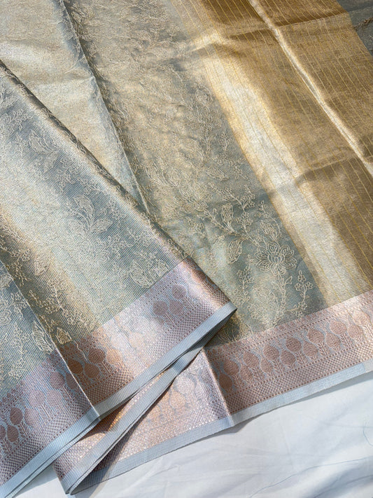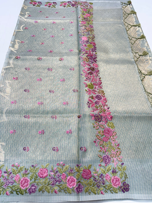 Powder blue shade tissue kota embroidery primum Banarasi saree
