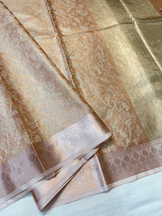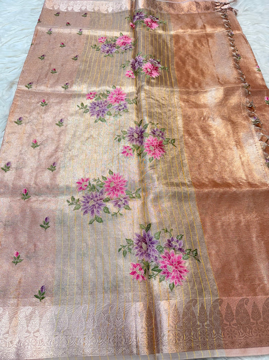 Dusty pink shade tissue kota embroidery primum Banarasi saree