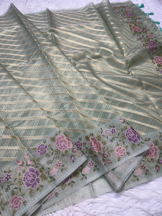 Pista green shade tissue kota embroidery primum Banarasi saree