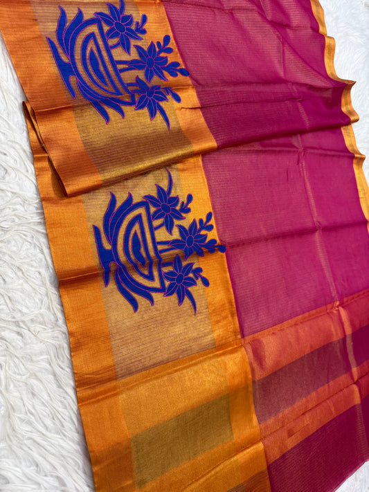 Royal pink bronze shade tissue appliqué work primum Banarasi saree