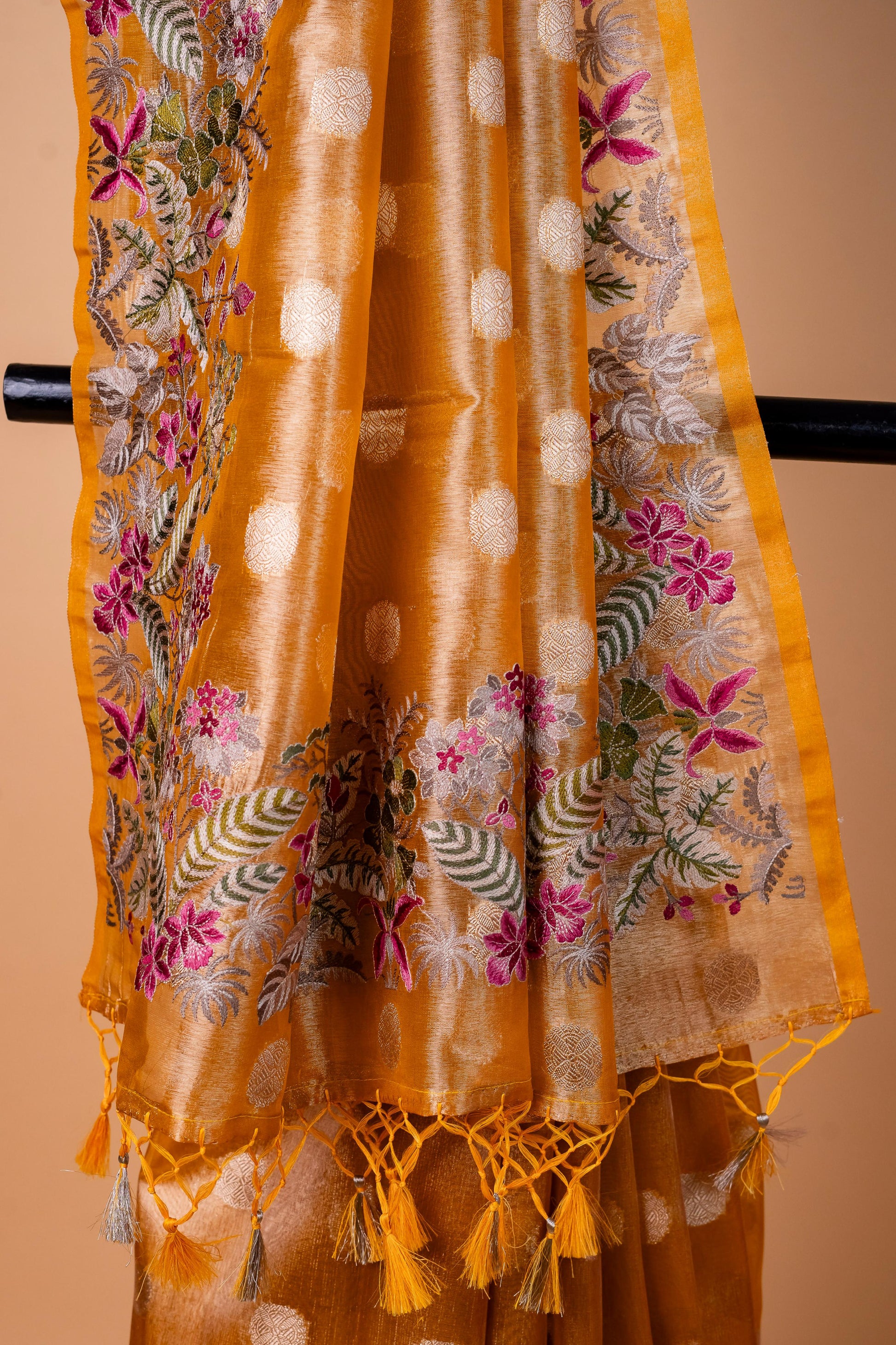 Mustard Tissue Designer Embroidery Premium Banarasi Saree