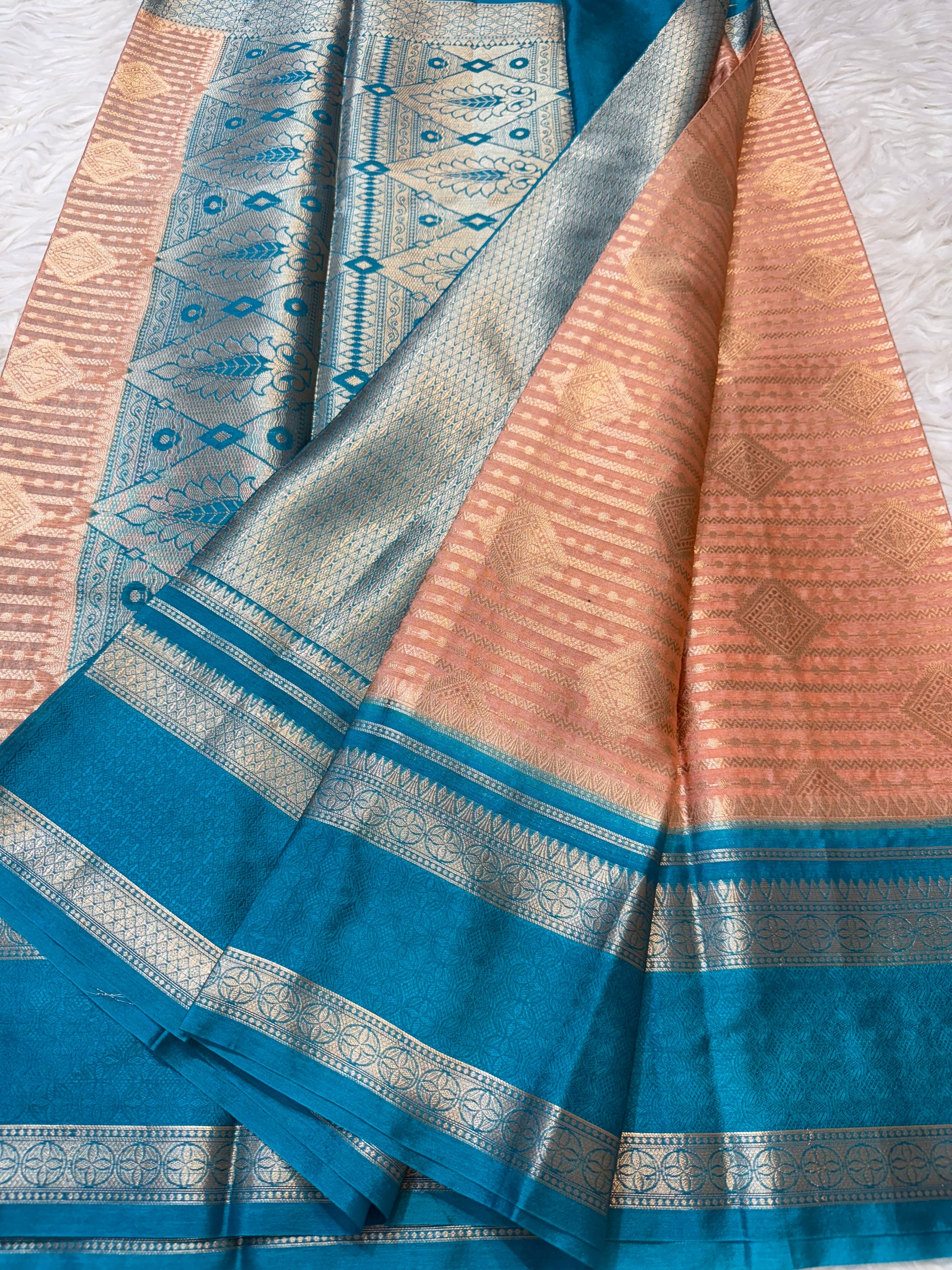 Peach firozi warm silk premium Banarasi saree