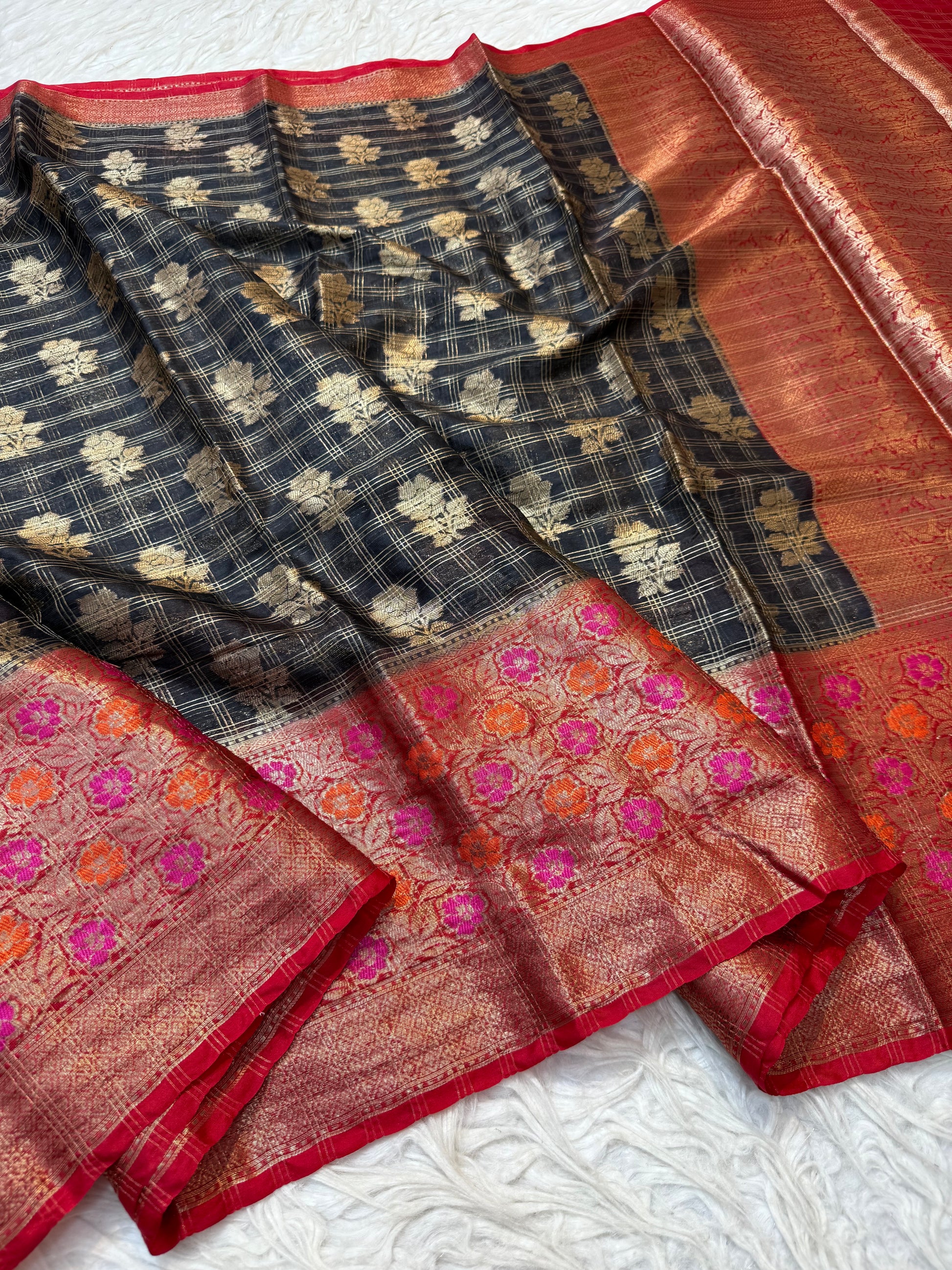Black red shade warm silk premium Banarasi saree