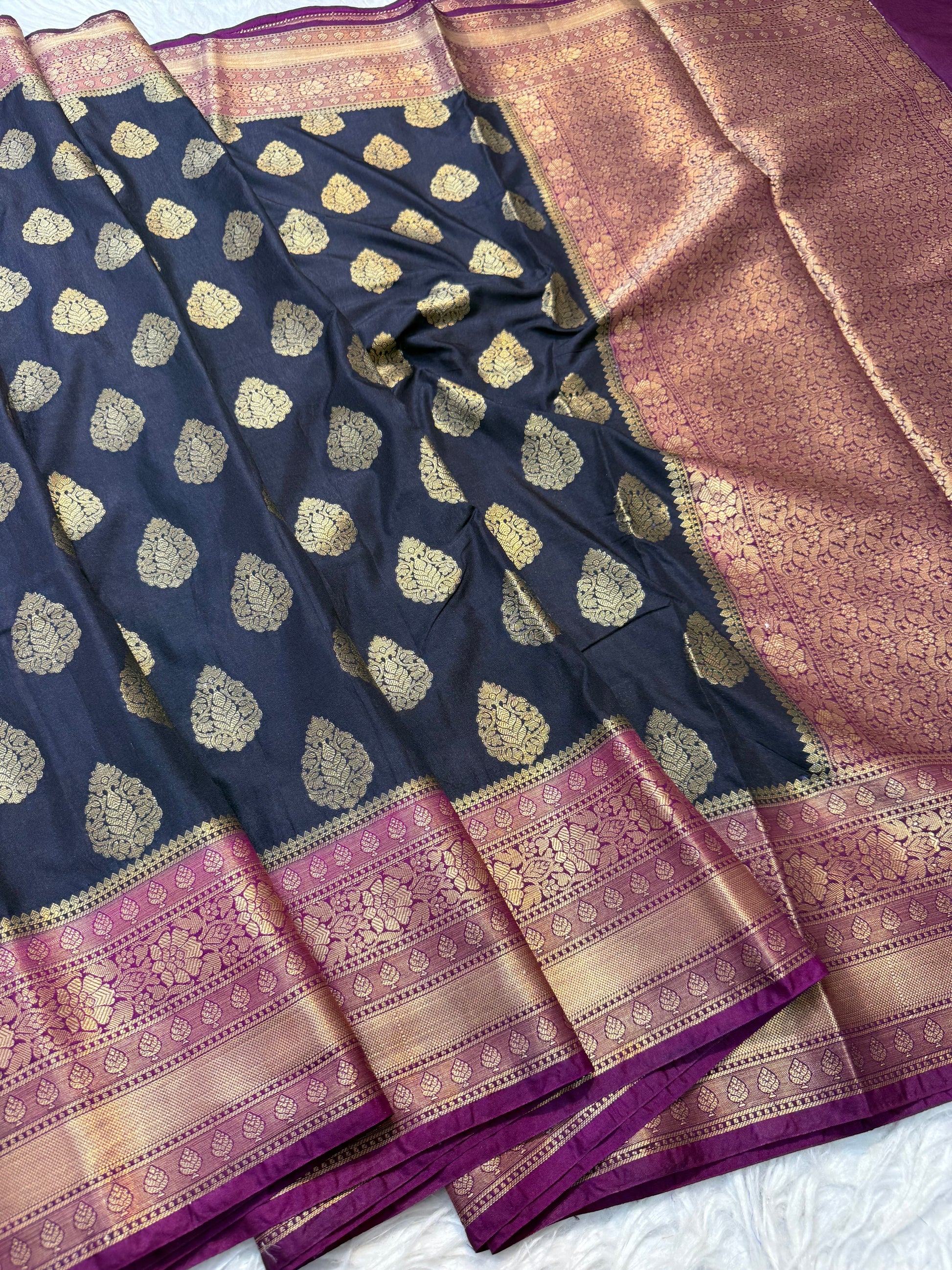 Black magenta shade Dupion Silk premium Banarasi Saree