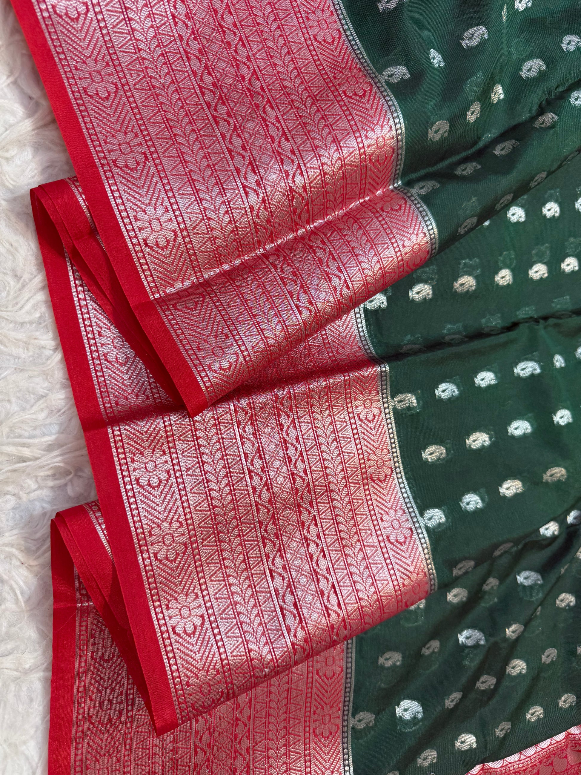 Bottle green red warm silk premium Banarasi saree