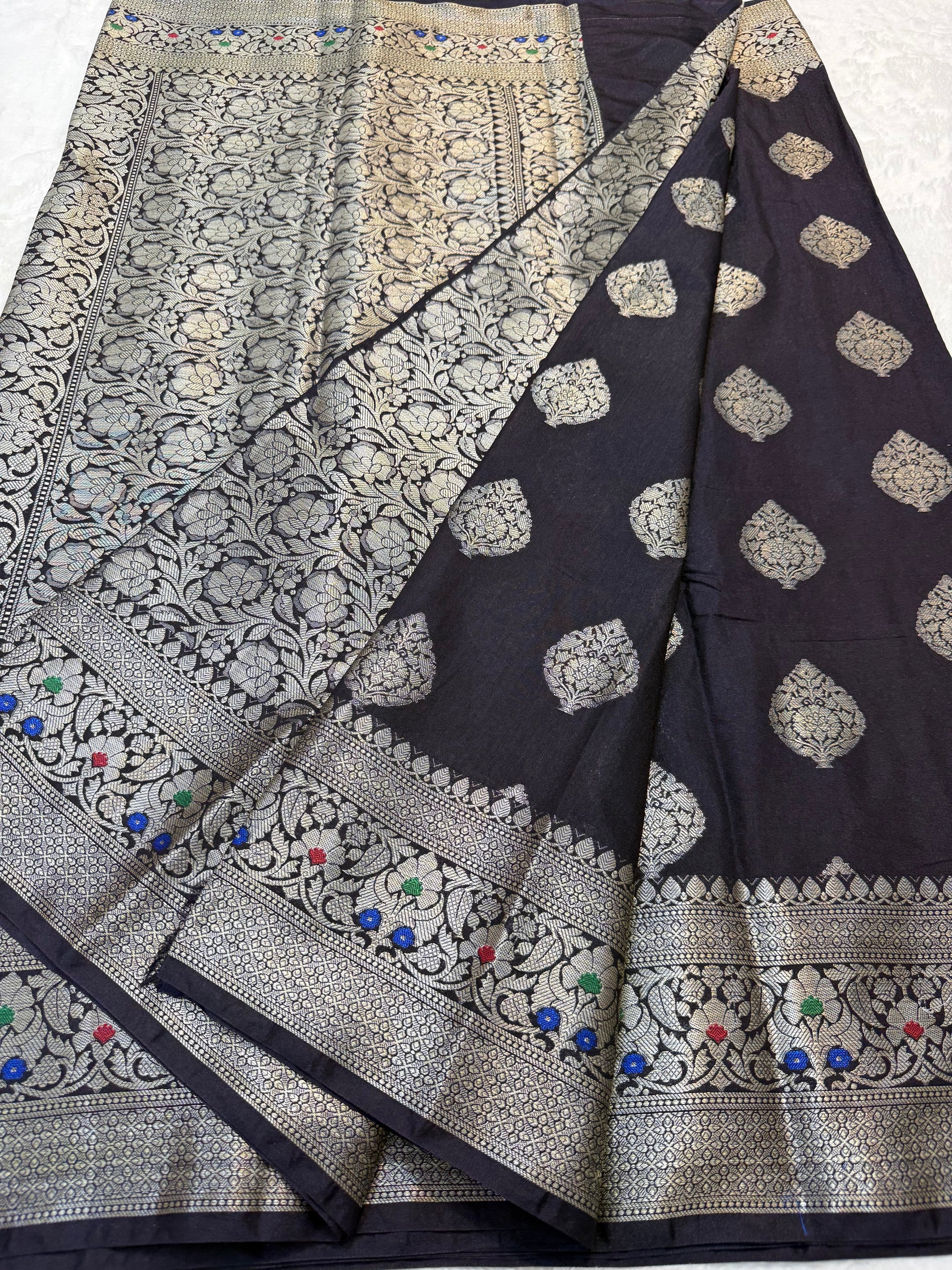 black shade Dupion Silk premium Banarasi Saree