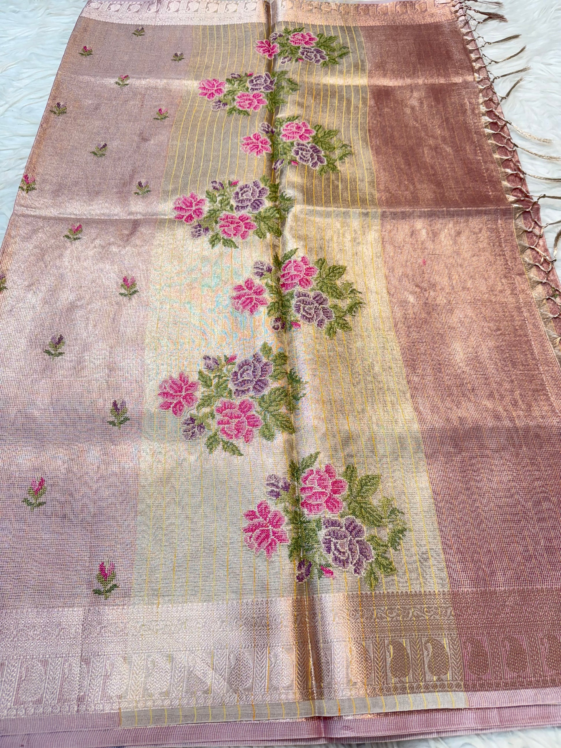 Peach shade tissue kota embroidery primum Banarasi sareeZSB681