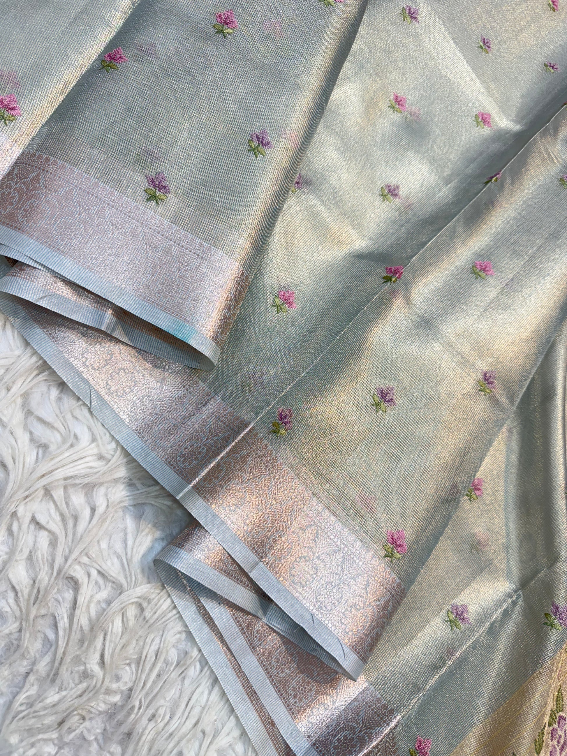 Sea green  shade tissue kota embroidery primum Banarasi saree