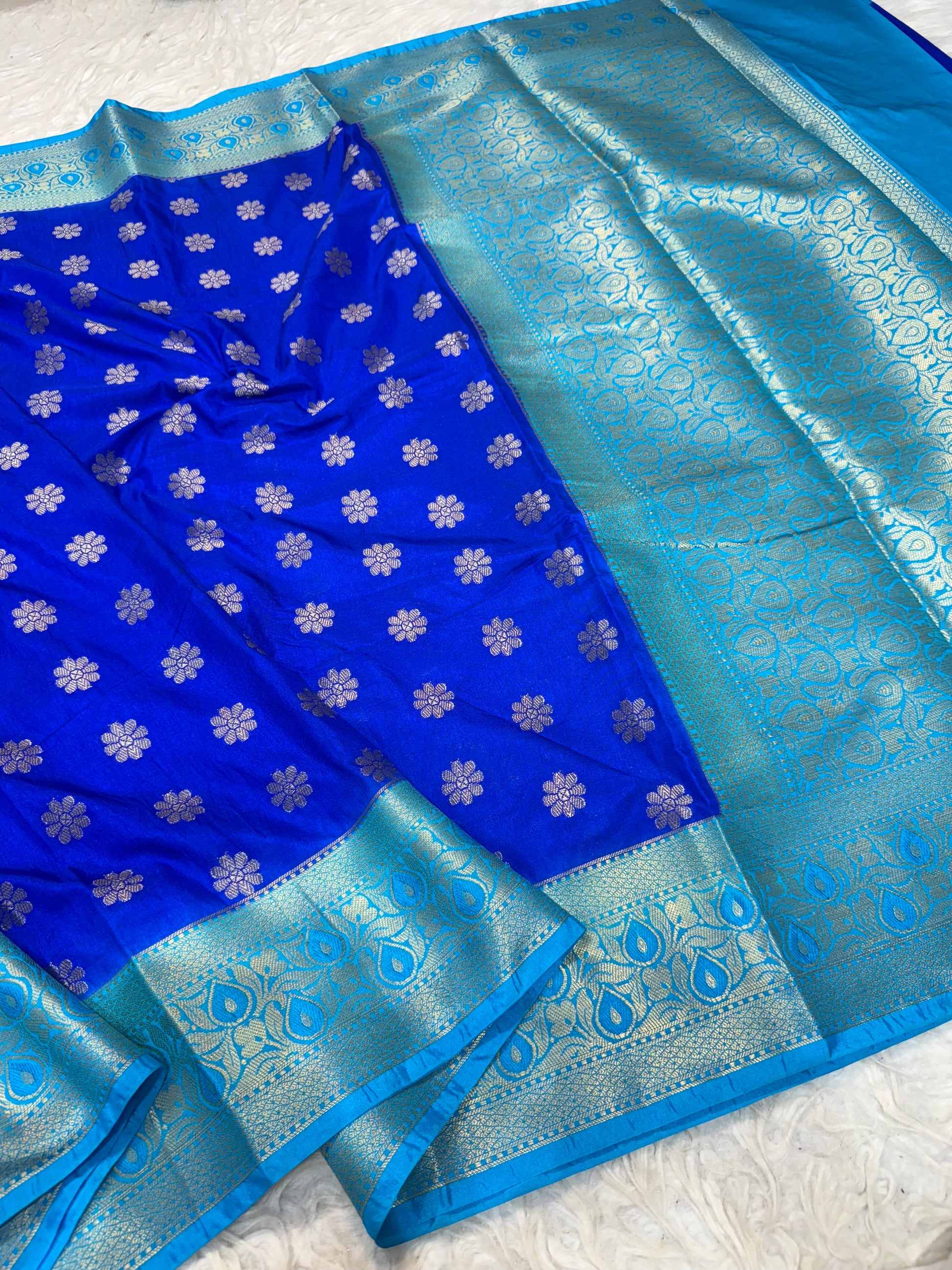 Royal blue & firozi shade Dupion Silk premium Banarasi Saree
