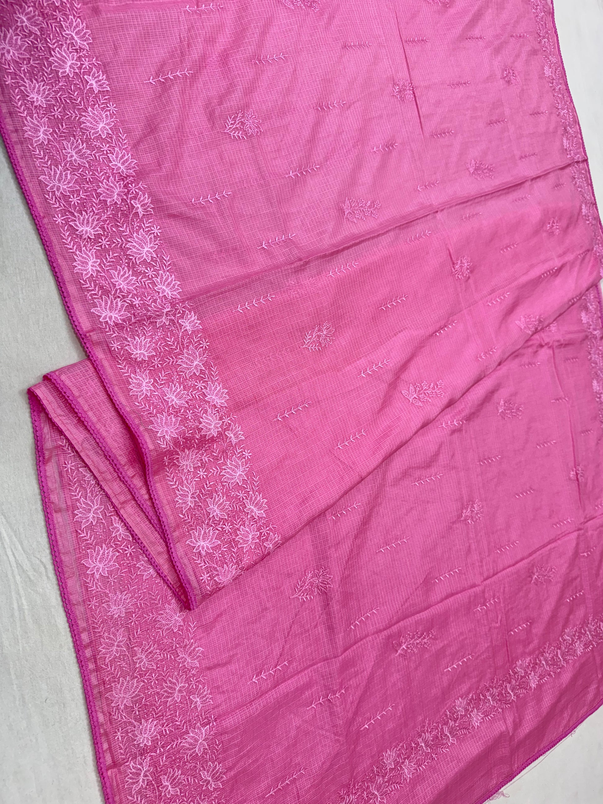 Pink shade cotton kota chickenkari embroidery Banarasi saree