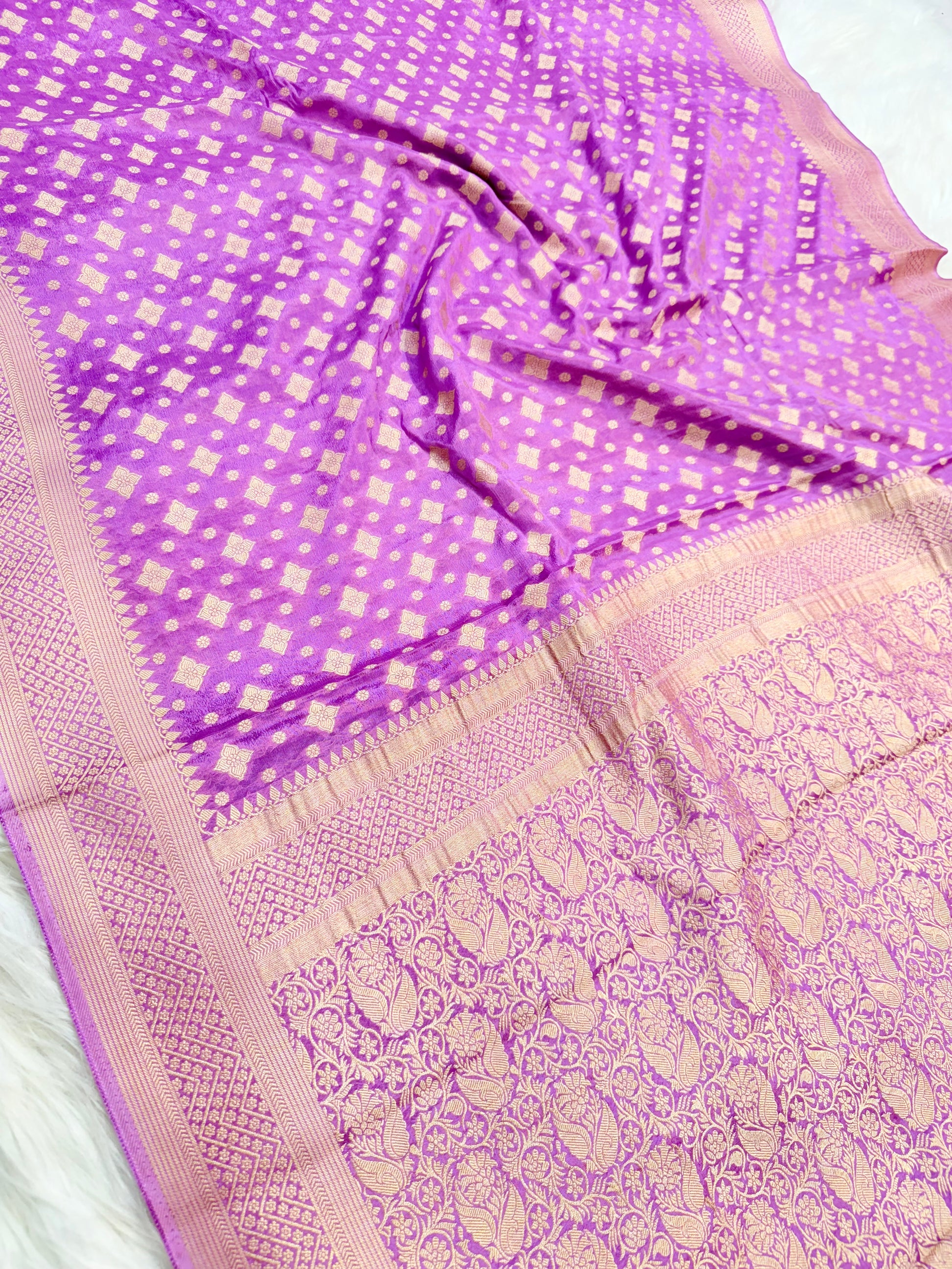 Elevate your elegance with the Red Chinon Viscose Banarasi Saree, featuring a timeless open border and delicately woven dot booti design. Crafted from luxurious Chinon viscose, this saree offers a graceful drape and subtle sheen, perfect for festive occasions and formal gatherings. Its refined Banarasi craftsmanship blends tradition with sophistication, making it an exquisite addition to your wardrobe.
