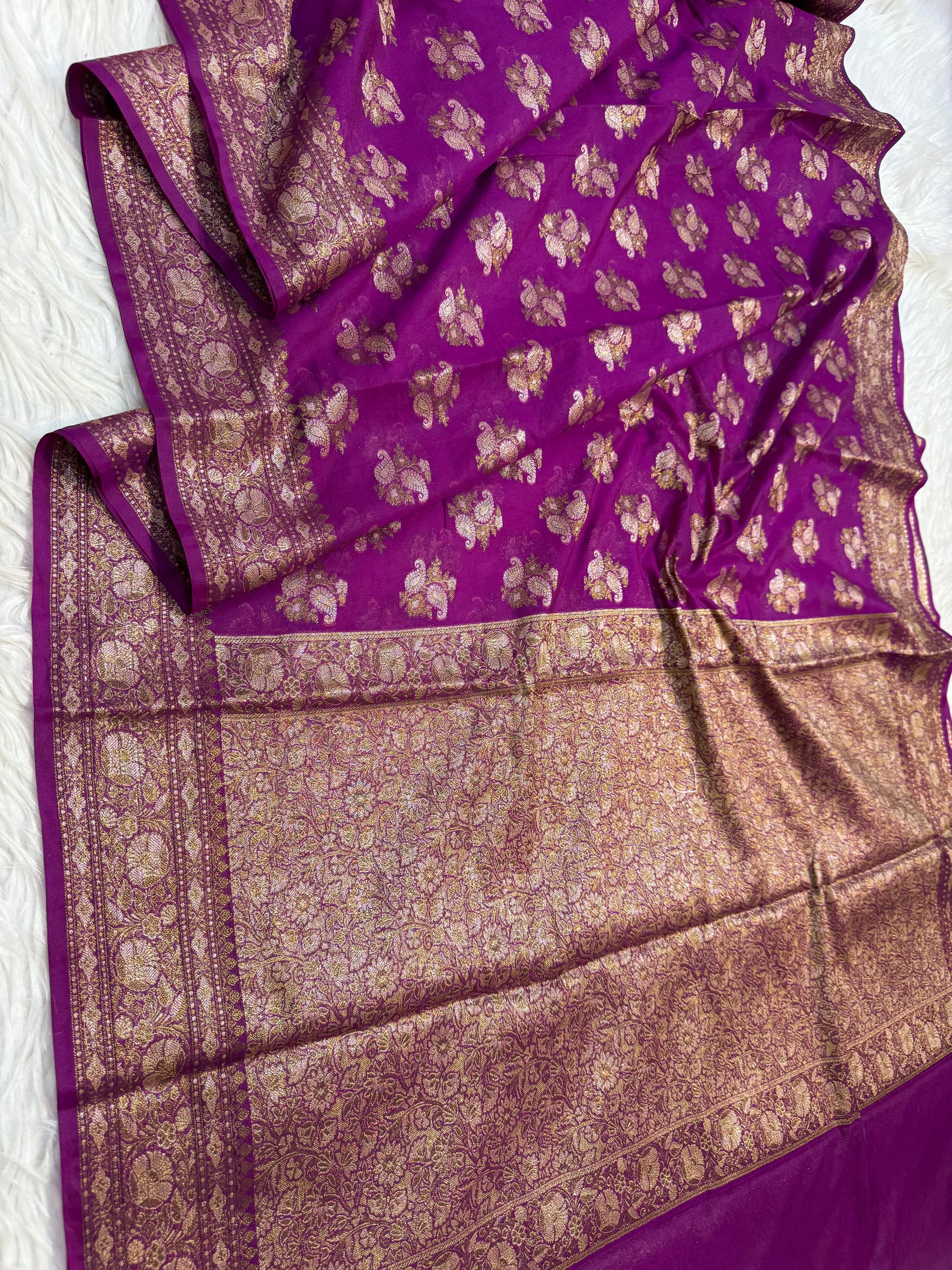 Magenta shade georgatte Banarasi saree