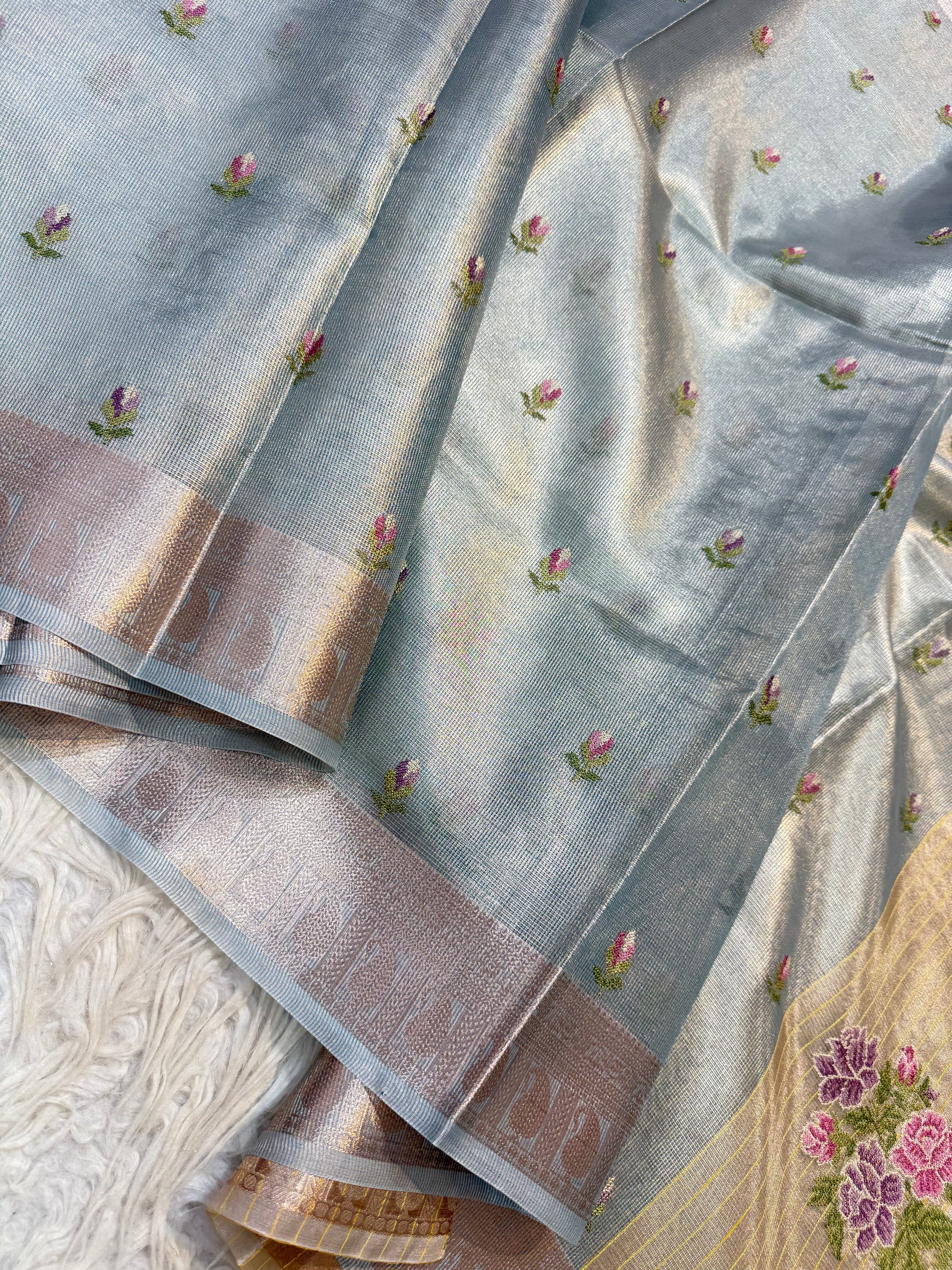 Sea green shade tissue kota embroidery primum Banarasi saree