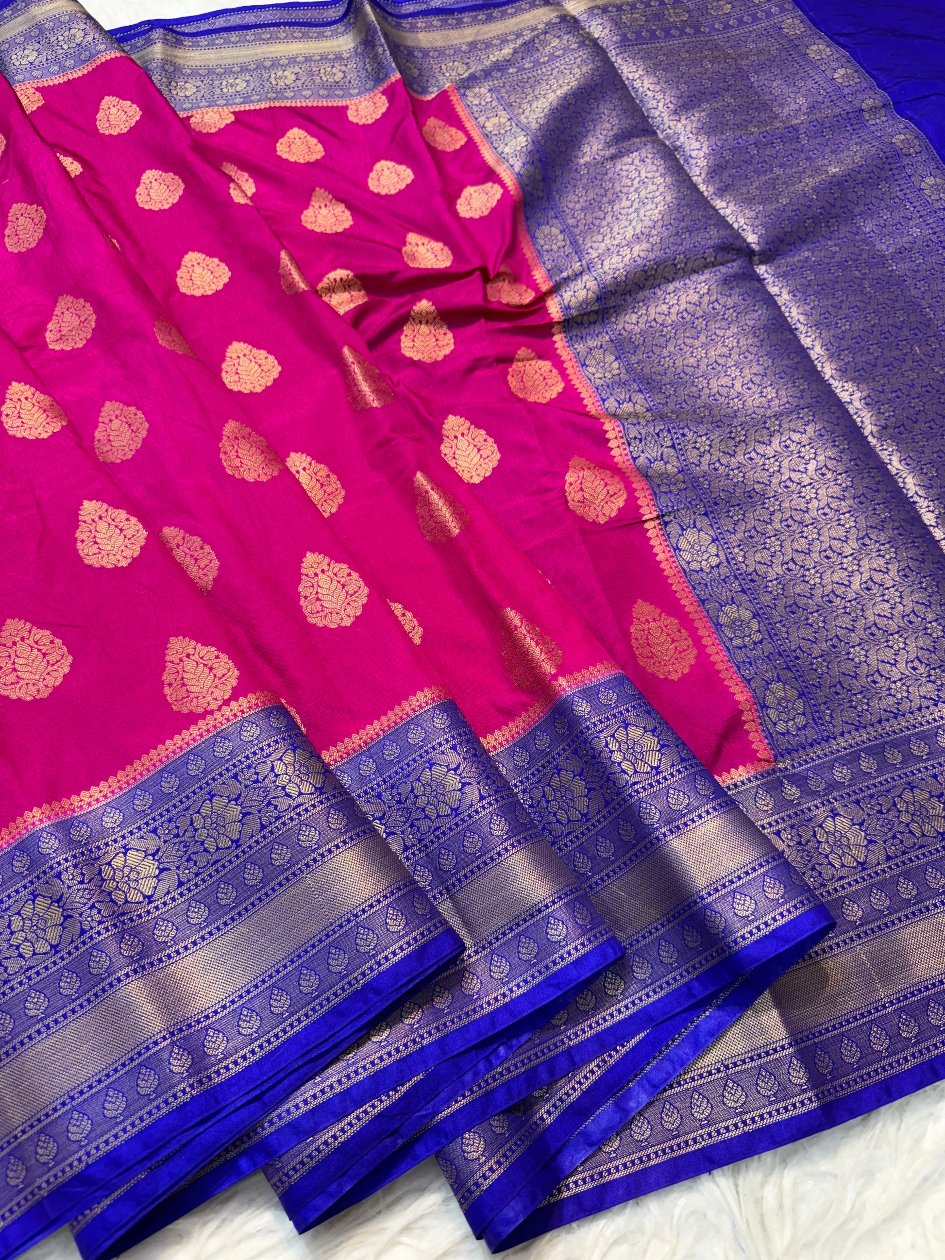 Royal pink blue shade Dupion Silk premium Banarasi Saree
