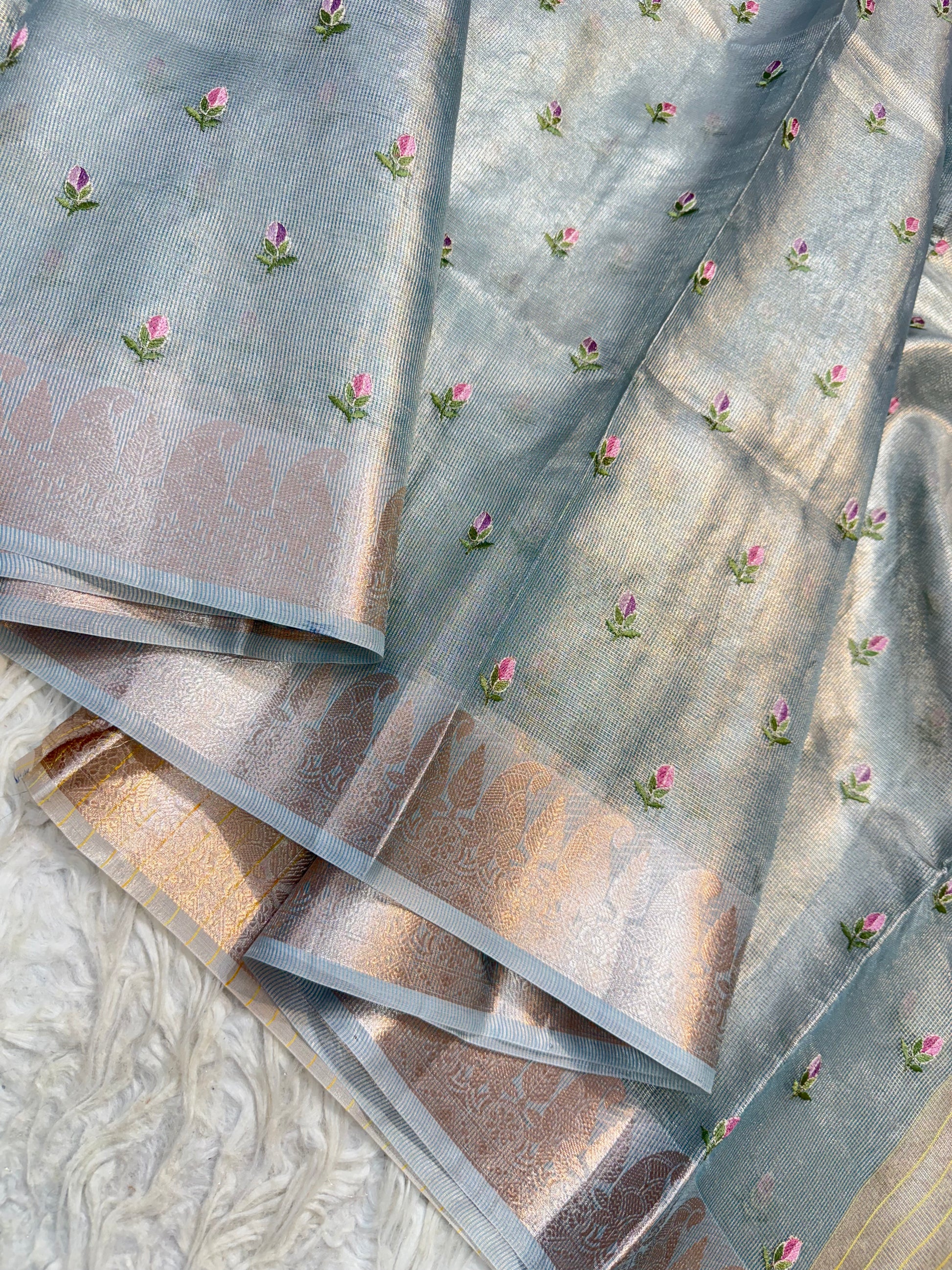 Sea green shade tissue kota embroidery primum Banarasi saree