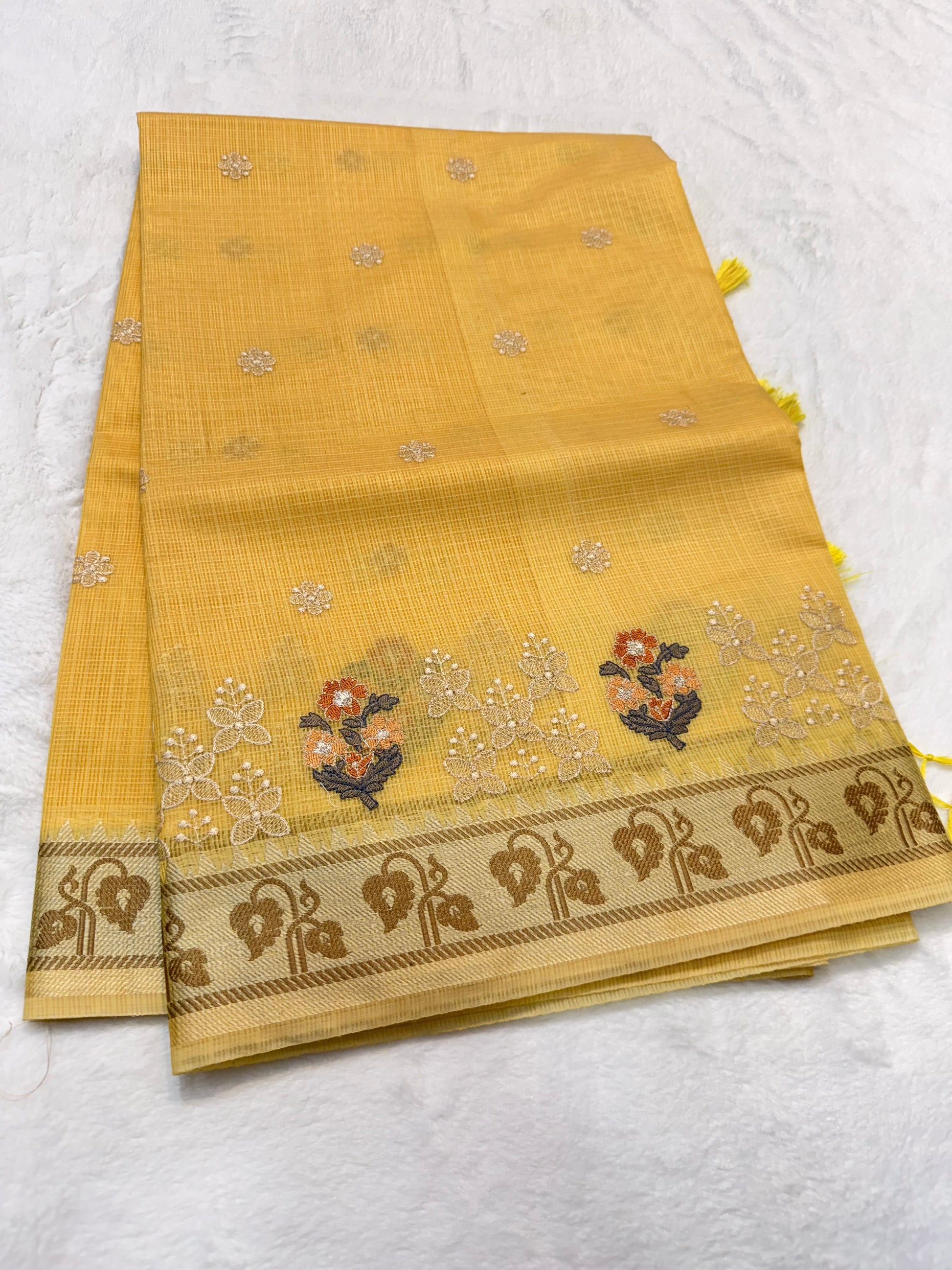 Yellow shade kota designer embroidery Banarasi saree