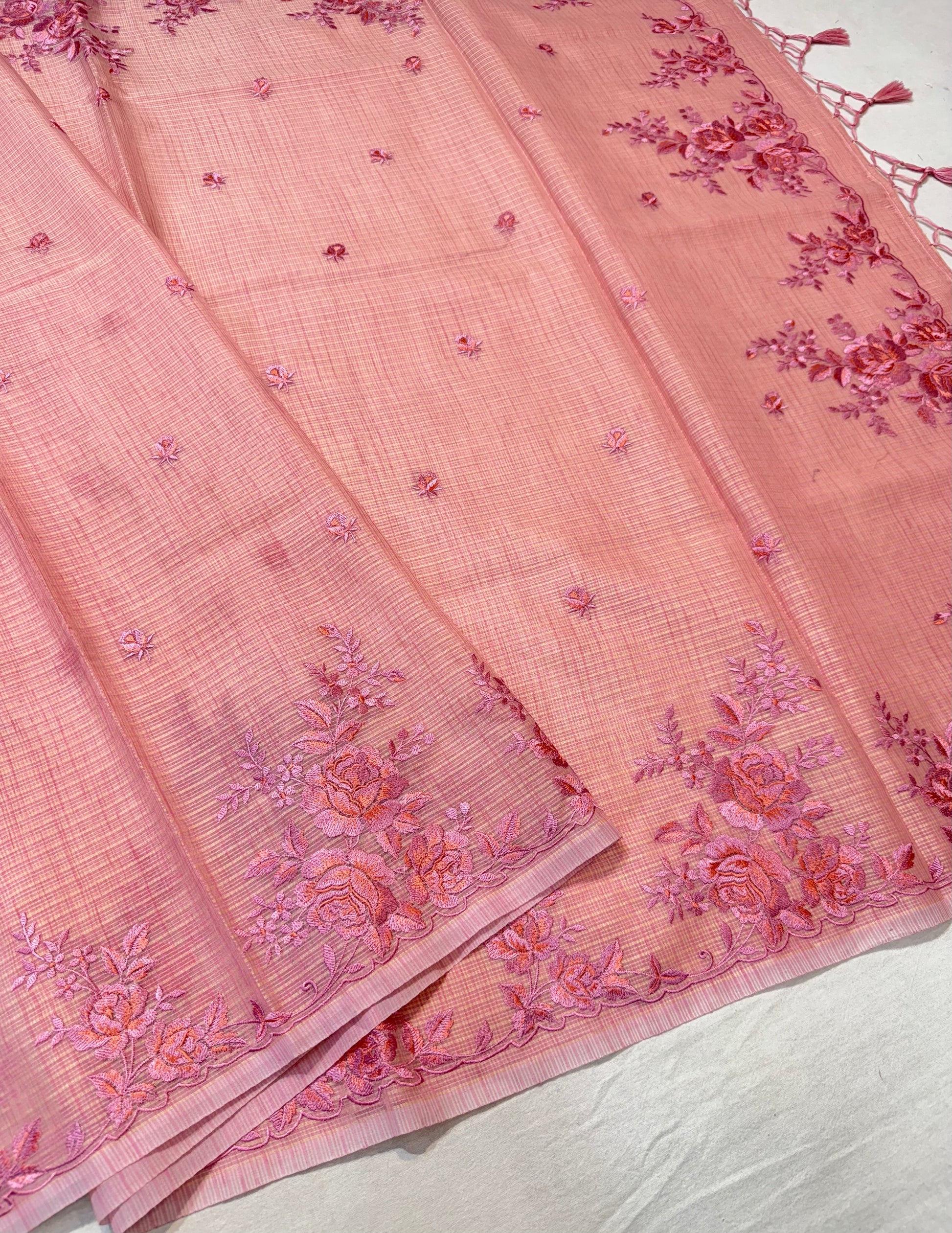 Dusty pink shade kota designer embroidery premium Banarasi saree